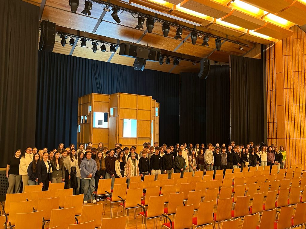 Gemeinsam mit ihren Lehrerinnen tauchten sie in die bewegende Geschichte der 13-jährigen Adele ein, die während der Zeit des Nationalsozialismus auf der Flucht war. Durch die mitreißende Darstellung erhielten die Schüler:innen einen unmittelbaren Eindruck davon, welche Ängste, Hoffnungen und Herausforderungen ein junges Mädchen in einer solchen Extremsituation durchleben musste.
