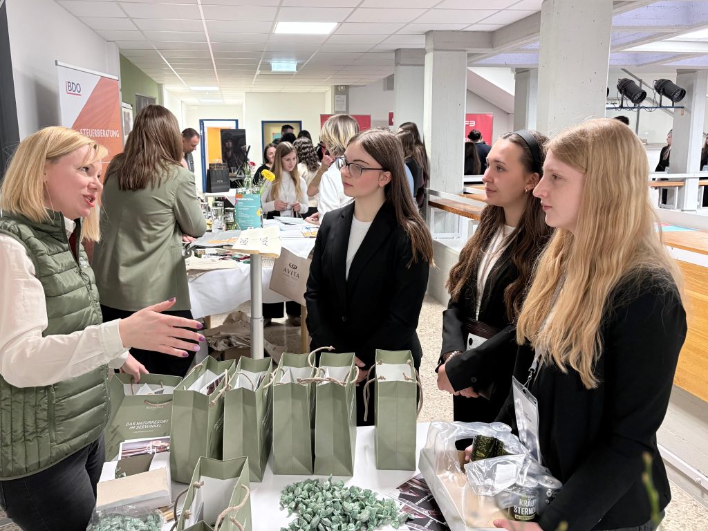 Die Jugendlichen nutzten die Gelegenheit, sich umfassend über Praktika, Lehrstellen und Studienmöglichkeiten zu informieren und dabei persönliche Gespräche mit potenziellen Arbeitgeber:innen zu führen. Hervorzuheben ist das Engagement der Schüler:innen, die den Tag mit viel Einsatz organisierten und sowohl beim Empfang der Gäste als auch beim Auf- und Abbau tatkräftig unterstützten.